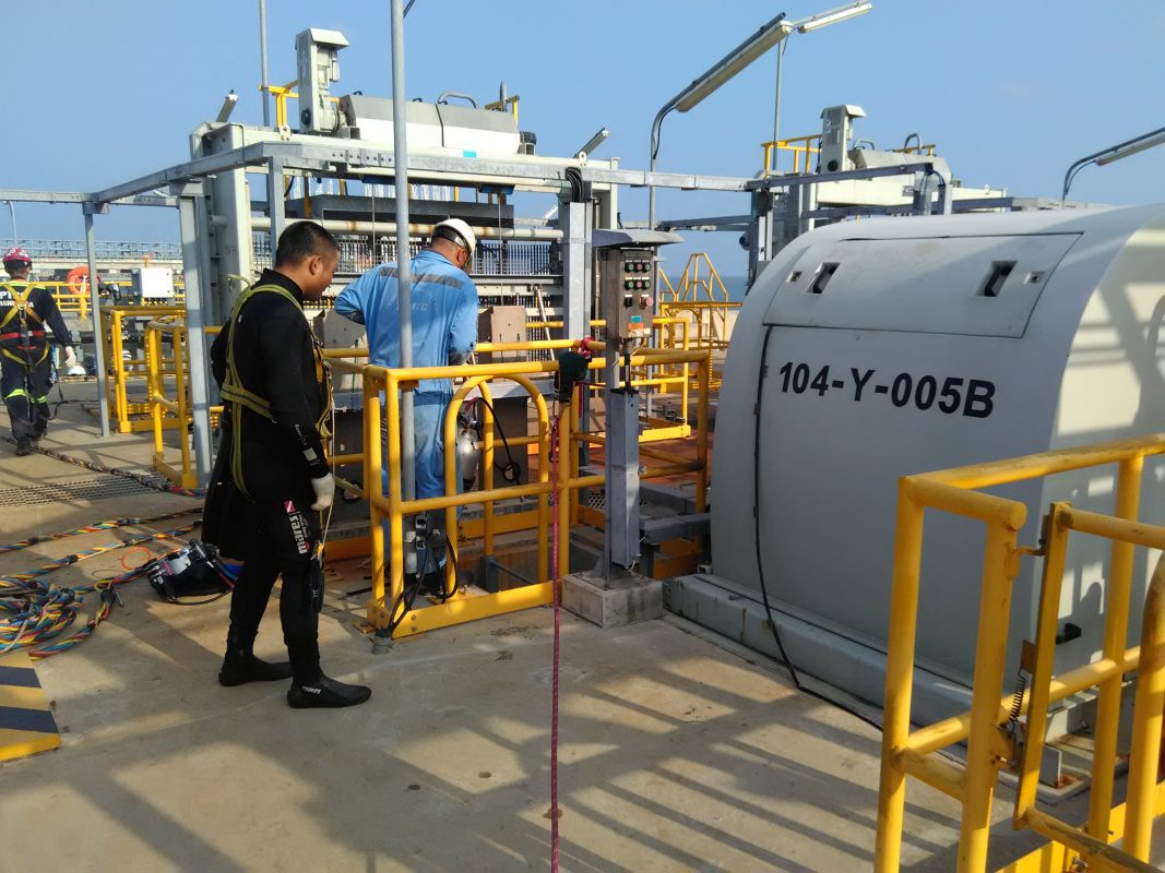 From 23 December 2021 to 25 December 2021, Hoang Thai performed an inspection for the seawater intake system of Nghi Son Refinery and Petrochemical LLC (NSRP). This entirely inspection is carried out yearly to provide close visual insight into the condition of the seawater intake and answered integrity questions relating to critical components of the intake structure.