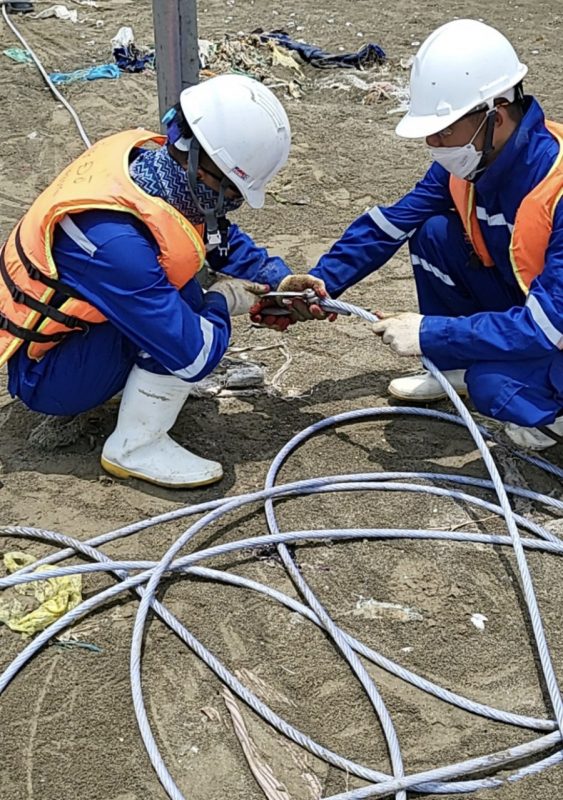 Patrols are carried out for 13,200m (about 33,000 m2) of temporary fences and 14,120m (about 35,300 m2) permanent fence of onshore along with 600m (about 1,800m2) of the offshore fence. This work is performed weekly to ensure prompt detection and correction the damaged locations.