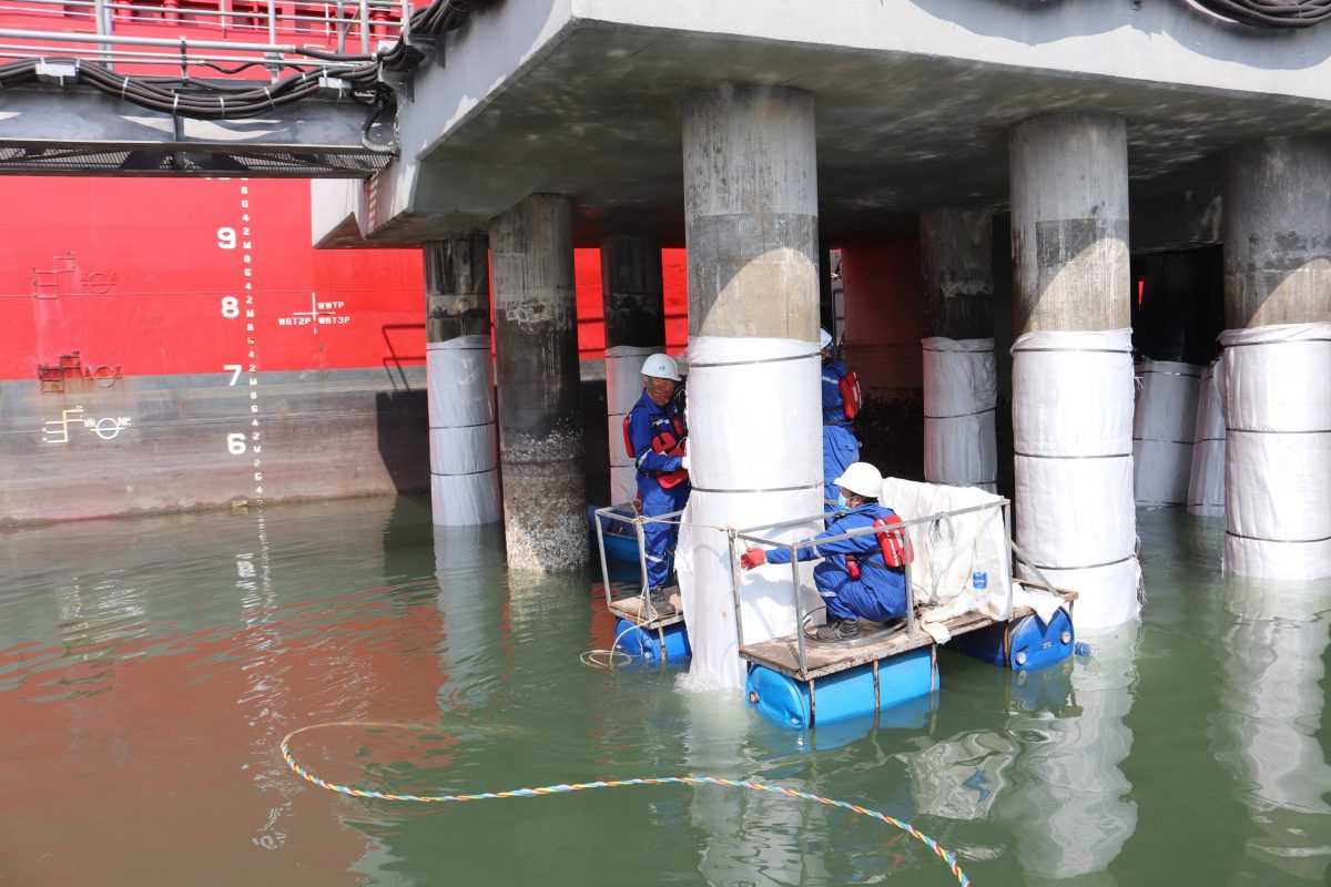 HTmarine is pleased to announce the successful completion of cleaning services and protective wrapping provision for the pile system at the Nghi Son 2 Thermal Power Plant in March 2024. The project involved cleaning and wrapping a total of 160 piles and 5 fenders, ensuring the structural integrity and longevity of the triestle pier.