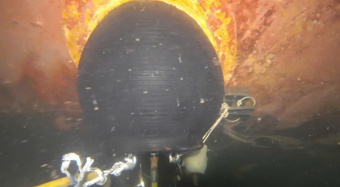 To facilitate onboard repairs and maintenance, our diving team used an inflatable pipe plug, which was inserted into the overboard discharge and inflated to create a watertight seal. This method effectively prevents water ingress, allowing safe and efficient repairs without the need for dry-docking.